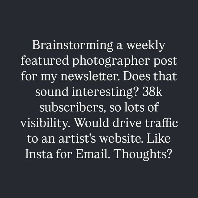 I loathe Instagram / Meta and unfortunately if the medium is the message then every photographer is a writer on substack and to be blunt this platform is full of great writing (most of which is not by photographers.)