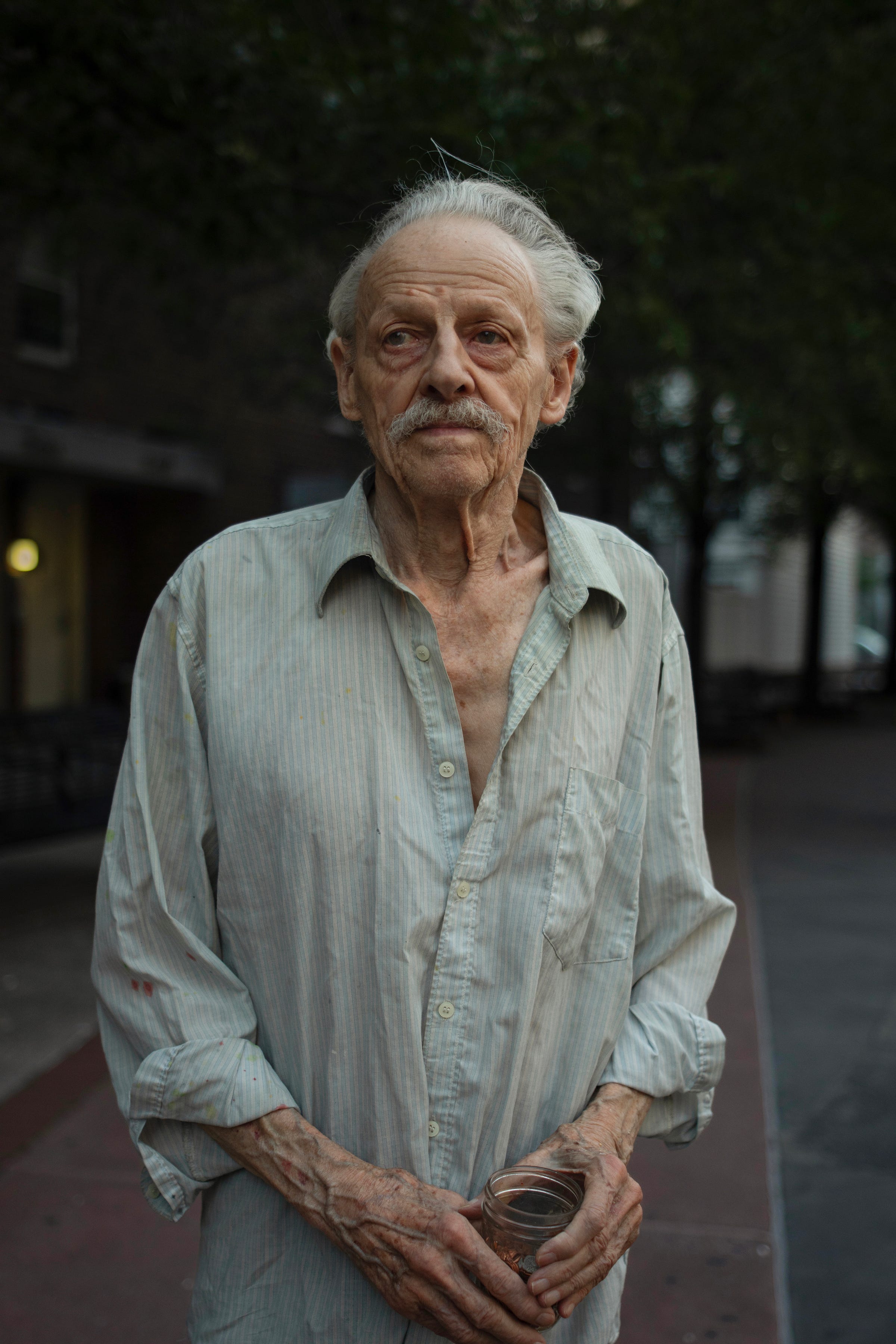 I met Robert Janz at dusk on a spring day while photographing the waning light in Lower Manhattan. Drawn to the threadbare glean of his shirt and the translucent nature of his skin, I followed him and we talked. He carried a jar of coins that he left around the neighborhood for those less fortunate.