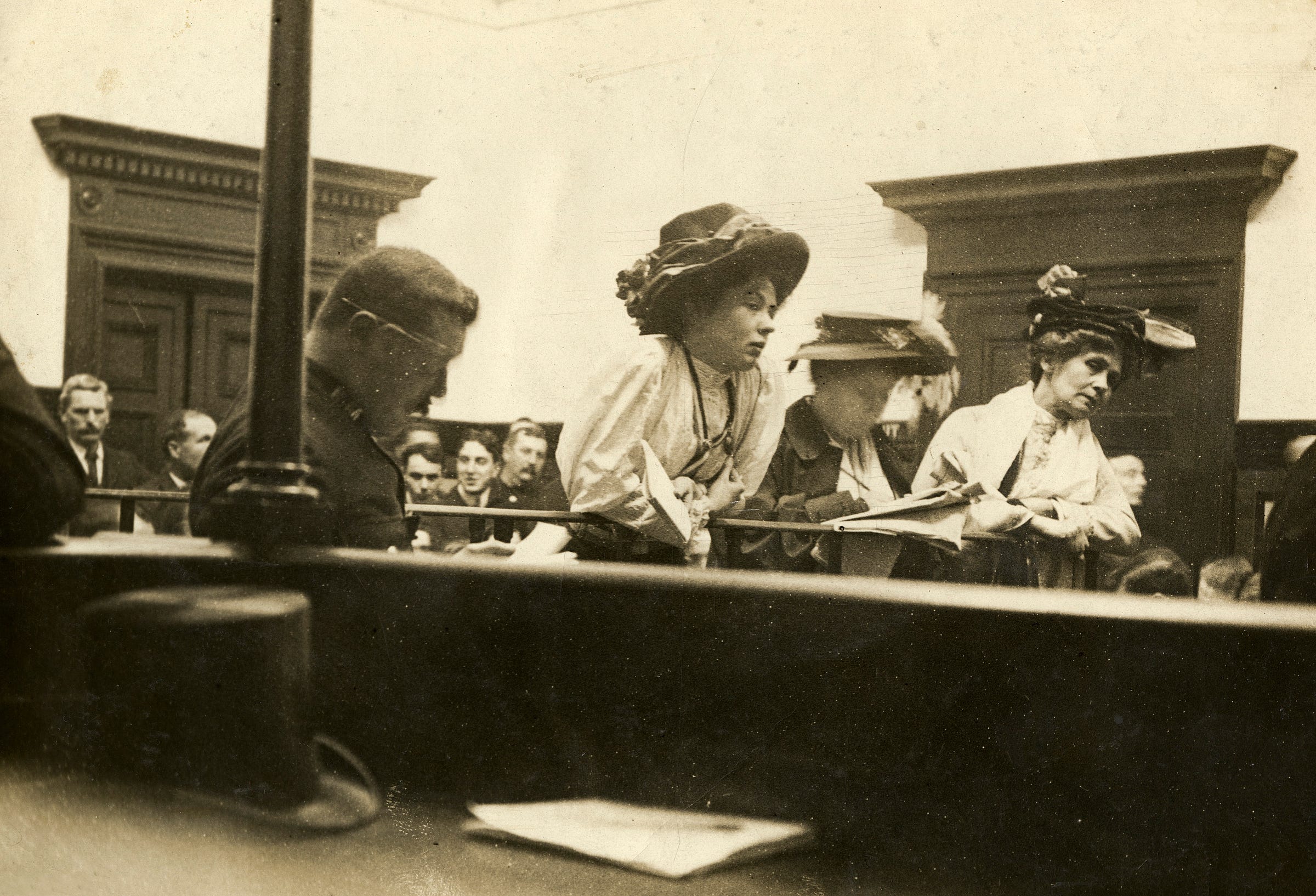 The three suffragists had been arrested for conduct likely to breach the peace after encouraging the public to “rush,” or invade, the House of Commons at the opening session of Parliament. Christabel Pankhurst acted as the defense attorney. (Despite having a law degree from the University of Manchester, as a woman she could not practice law professionally.) The interest in the trial was such that “a stranger passing the police court earlier in the day might have mistaken it for a theatre at which a matinée performance was to be given, so large was the number of women waiting for the opening of the doors,” reported The Daily Mirror.