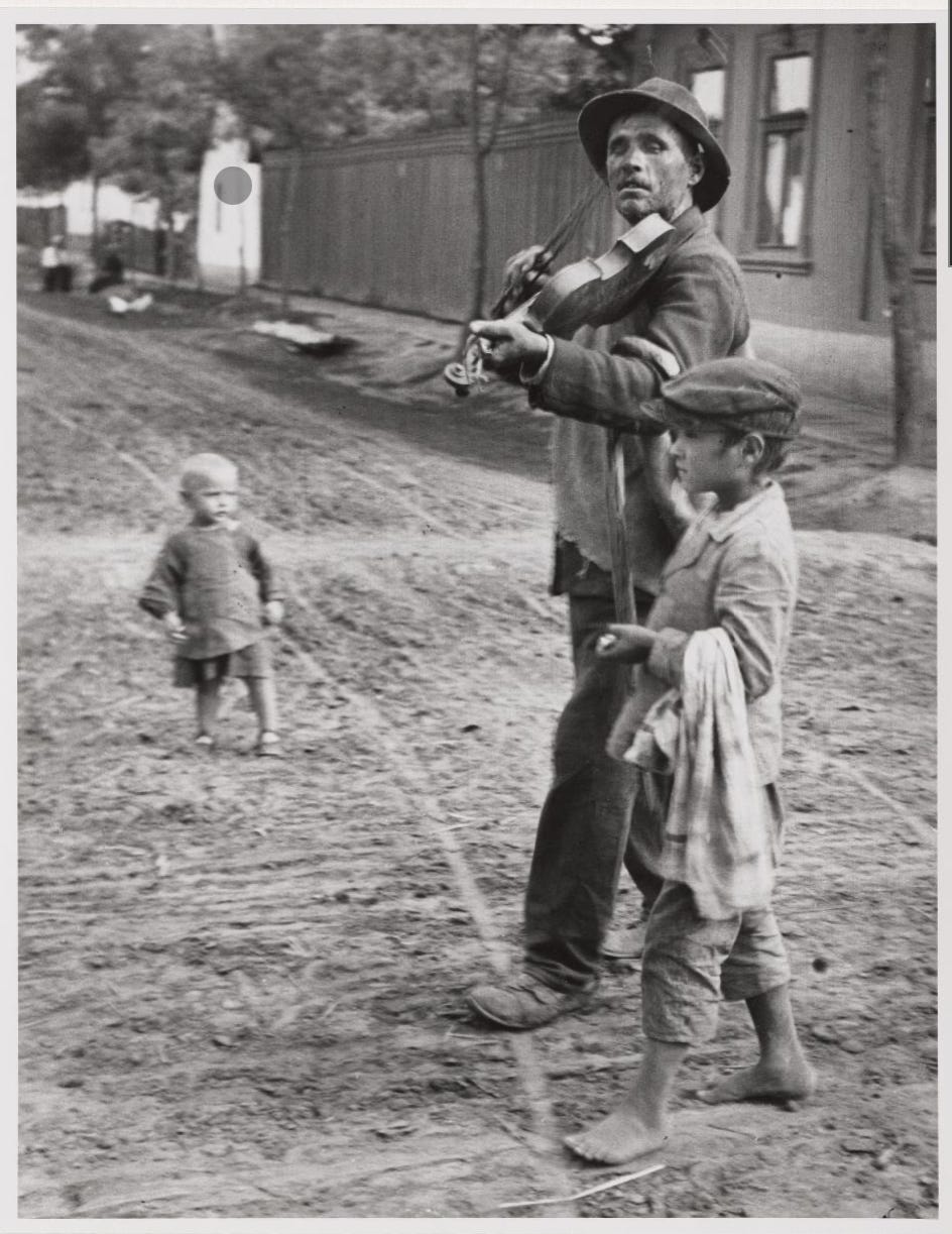 For example, in the image above, Wandering Violinist, Abony, 1921, by André Kertész, Barthes finds his punctum in, of all things, the dirt: